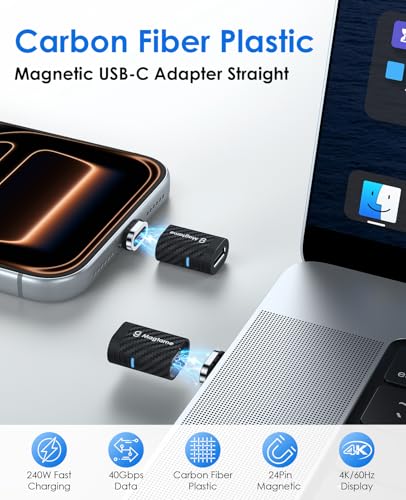 Magtame Plastic Fiber USB C Magnetic Adapter 24Pin 240W (2Pack), Straight Type-C with Dust-Proof Design, 40Gbps Fast & 4K Video, Protect Port Lifespan for i-Phone 17/16