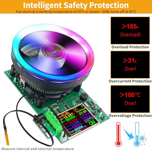 - Multi-Device Compatibility & Safety Features: This battery capacity tester supports discharge aging tests for a wide range of devices, including chargers, cables, power banks, batteries, and power adapters. It has intelligent safety protection such as overload, overcurrent and high temperature protection, real-time monitoring of status makes it safe and reliable.