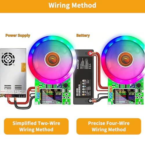 - Powerful Performance & Intelligent Cooling: This lithium battery tester has a high voltage of 200V, a high current of 20A, and a high power of 180W. Equipped with an intelligent temperature-controlled colored light fan, strong airflow and low noise, it can extend the service life and support continuous operation of long-term discharge or aging tests.