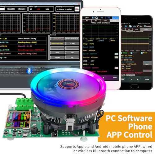 - Four Discharge Modes & App Compatibility: The USB load tester supports constant current, constant power, constant resistance, and constant voltage modes. It is compatible with Android and iOS apps, as well as PC BT and wired connections, providing versatile testing options.