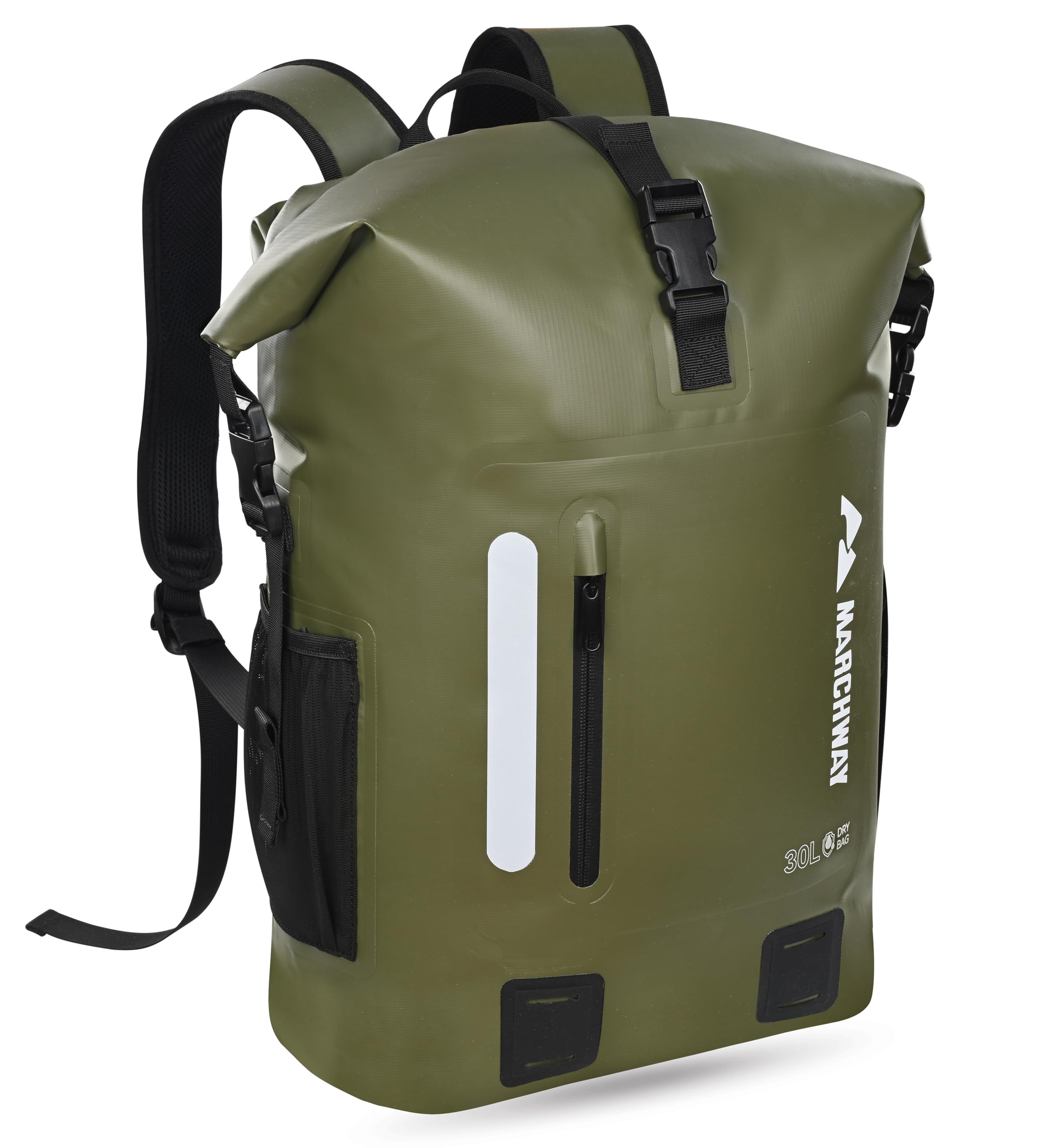MARCHWAY Roll Top Waterproof Backpack, Floating Dry Bag 20L/30L/45L with Ergonomic Rectangular Base, Cushioned Back, Hip Strap, Gear Loops, MOLLE for Hiking Camping Kayaking Travel (Army Green, 20L)