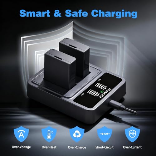 【Pro-Grade Protection Circuitry】Massate LED rapid dual charger with integrated safeguards against over-charging, over-discharging, over-current, and short circuits, ensures both battery and device safety. The LP-E10 battery charger further enhances this with regulated voltage output and temperature control. It delivers an extended lithium batteries lifespan, guaranteed equipment safety, and the confidence to charge reliably anywhere