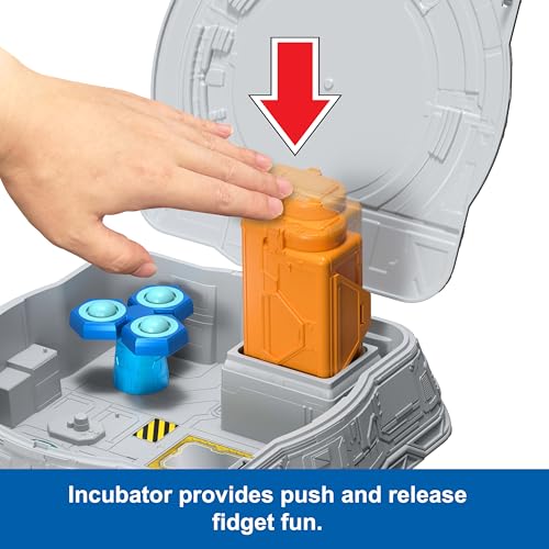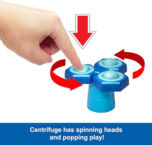 Spin and pop! The centrifuge has three spinning heads and each head has a bubble top that pops in and out like bubble wrap for fidgeting fun.