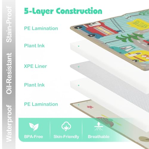 Five-Layer Design: Crafted with a five-layer composition including PE lamination, plant ink, and XPE foam, this foldable floor mat ensures a soft, breathable, and BPA-free surface that cushions babies while supporting their sensitive skin, making it a safe choice for everyday use.