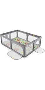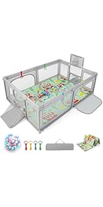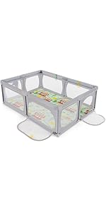 Spacious Play Area: Measuring 178x148cm, this baby play mat offers plenty of room for toddlers and infants to crawl, explore, and enjoy activities comfortably. This baby floor mat’s size also fits well with larger baby playpens, providing ample space for active movement and playtime fun.
