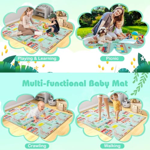 Convenient Folding & Multipurpose Use: Lightweight and easy to fold, this portable play mat simplifies storage and transportation. This foldable playmat is ideal not only for crawling and playtime but also works great as a yoga mat or for outdoor picnics, adapting seamlessly to various situations.