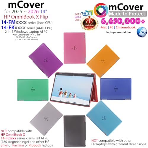 Made of high-quality translucent polycarbonate material which is shatter-proof and will protect your 2025 or newer 14" HP OmniBook X Flip 14-FMxxxx / 14-FKxxxx series 2-in-1(with the 360° hinge) Windows AI PC Laptop all around.
