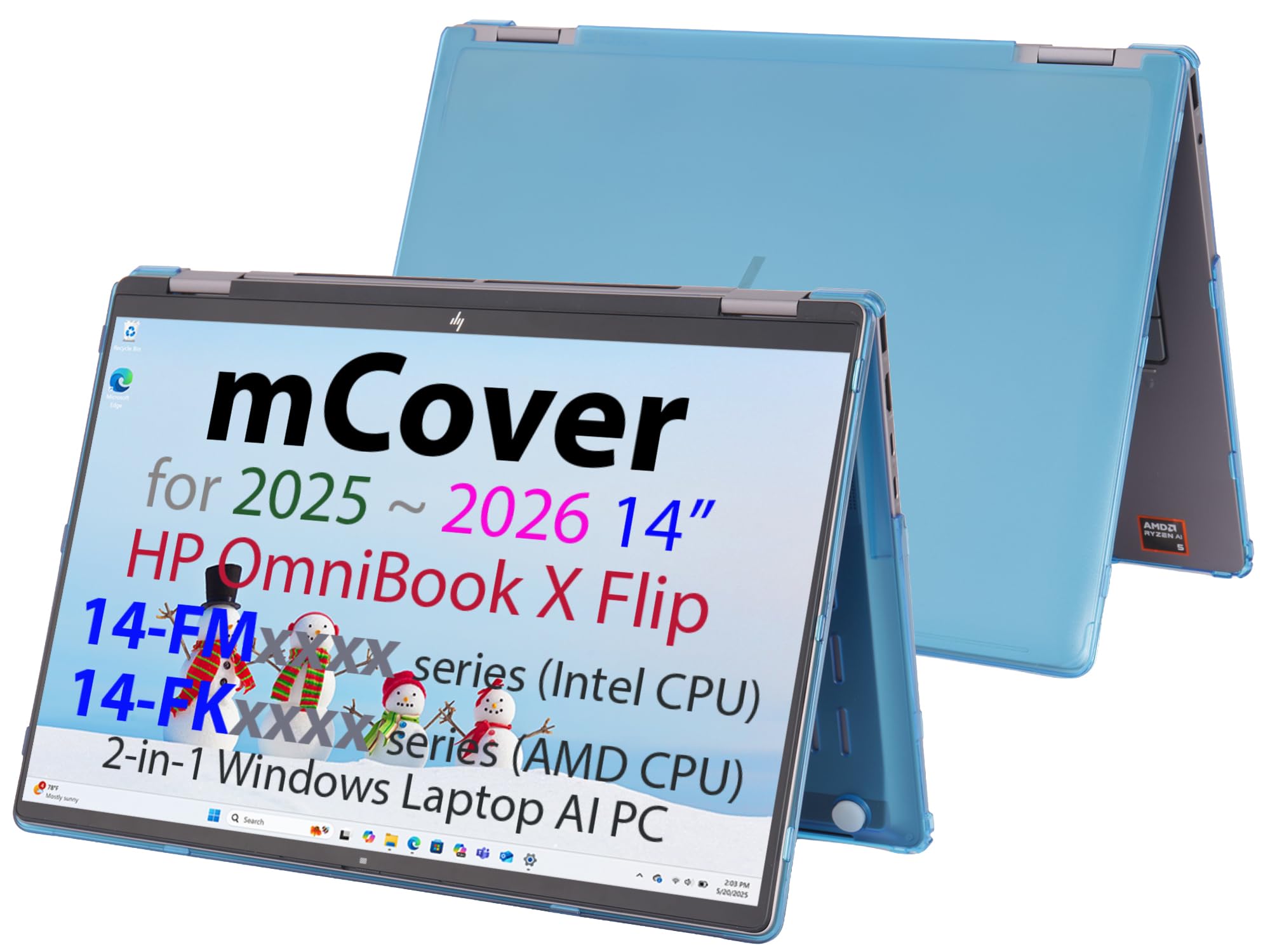 mCover Hard Case ONLY Compatible for 2025+ 14″ HP OmniBook X Flip 14-FMxxxx 14-FKxxxx 2-in-1 (with 360° Hinge) Windows Laptop (NOT Fitting Any Other HP Models)- Aqua