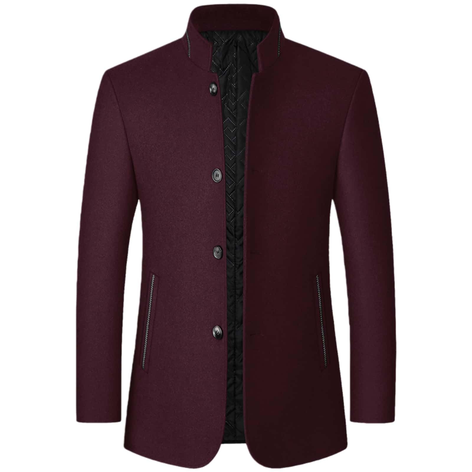 Men's Woolen Stand Collar Long Wool Blend Overcoat Slim