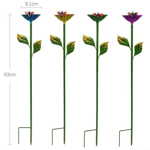 *Charming Multicolor Design: This set features four vibrant metal flower stakes in gold, pink, green, and blue, adding a lively touch to your garden with their flower-shaped cups and realistic leaves.