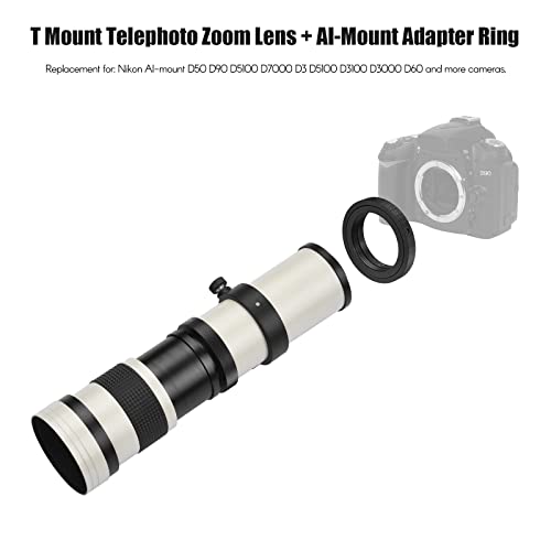 TMount Lens to AImount: T mount lens with adapter ring, replacement for T/T2 lenses to AImount D50 D90 D5100 D7000 D3 D5100 D3100 D3000 D60 and more cameras.
