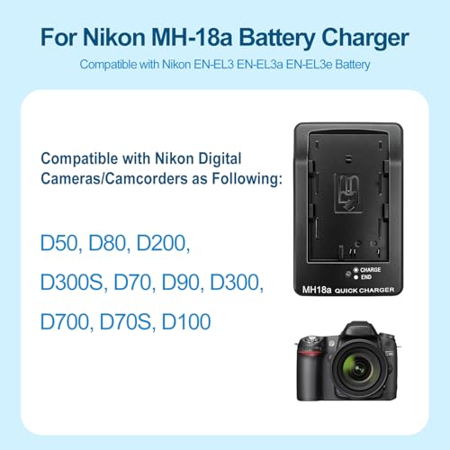 - MH-18 MH-18a Battery Charger compatible with EN-EL3e EN-EL3 EN-EL3a battery for Nikon D50, D70s, D70, D80, D90, D300s, D300, D200, D100 digital DSL/DSLR cameras / camcorders