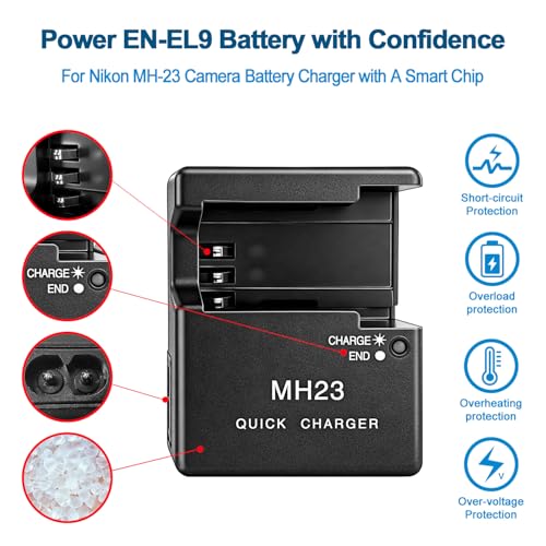 - Smart-Chip Safety Protection – MH-23 Charger Auto-cutoff when fully charged prevents overheating and extends EN-EL9 battery life, safely charge overnight. High quality EN-EL9 charger, edekoy have strictly quality controlled to ensure safe and reliable operation for years to come during the production process. The internal intelligent circuitry protects the battery with multiple protections, include over-current/over-voltage/short-circuit/over-heat and overload protection
