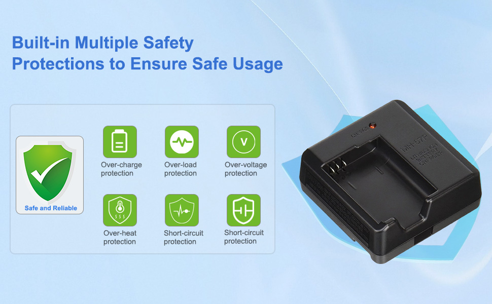 The MH-67P battery charger features Over-charge protection,Over-Current protection,Over-load protection, Over-voltage protection,Short-circuit protection, Over-heat protection It is CE and RoHS certified, and has been tested by the manufacturer to match OEM products.