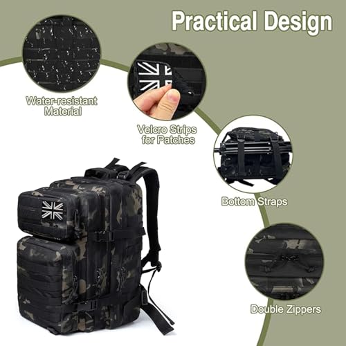 Military Tactical Backpack for Men and Women 45L Military Backpack Large 3 Day Bug Out Bag Laptop Bag for School, Hiking, Trekking, Hunting