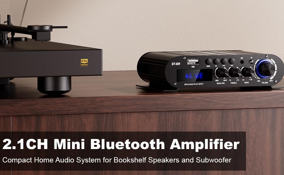 Mini Bluetooth Amplifier 2.1 Channel with Subwoofer Bass