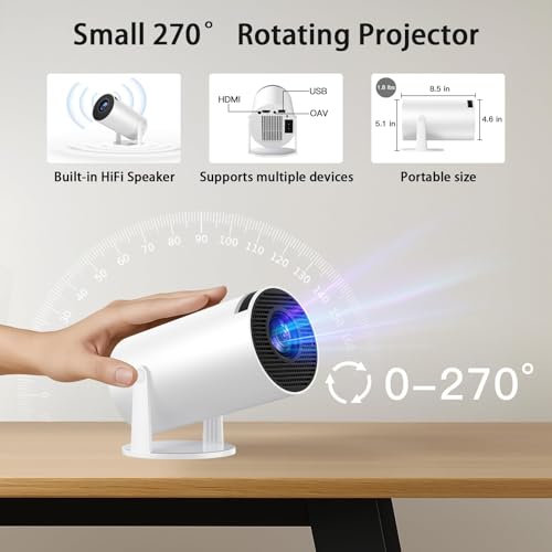 【270° Rotation】 Mini projector features a 270° rotatable stand, allowing you to flexibly project to any corner, including the ceiling, so you can enjoy a movie on the big screen from your couch.
