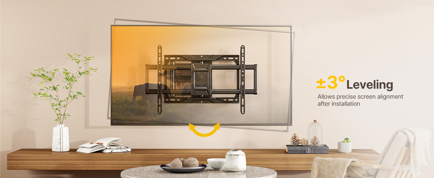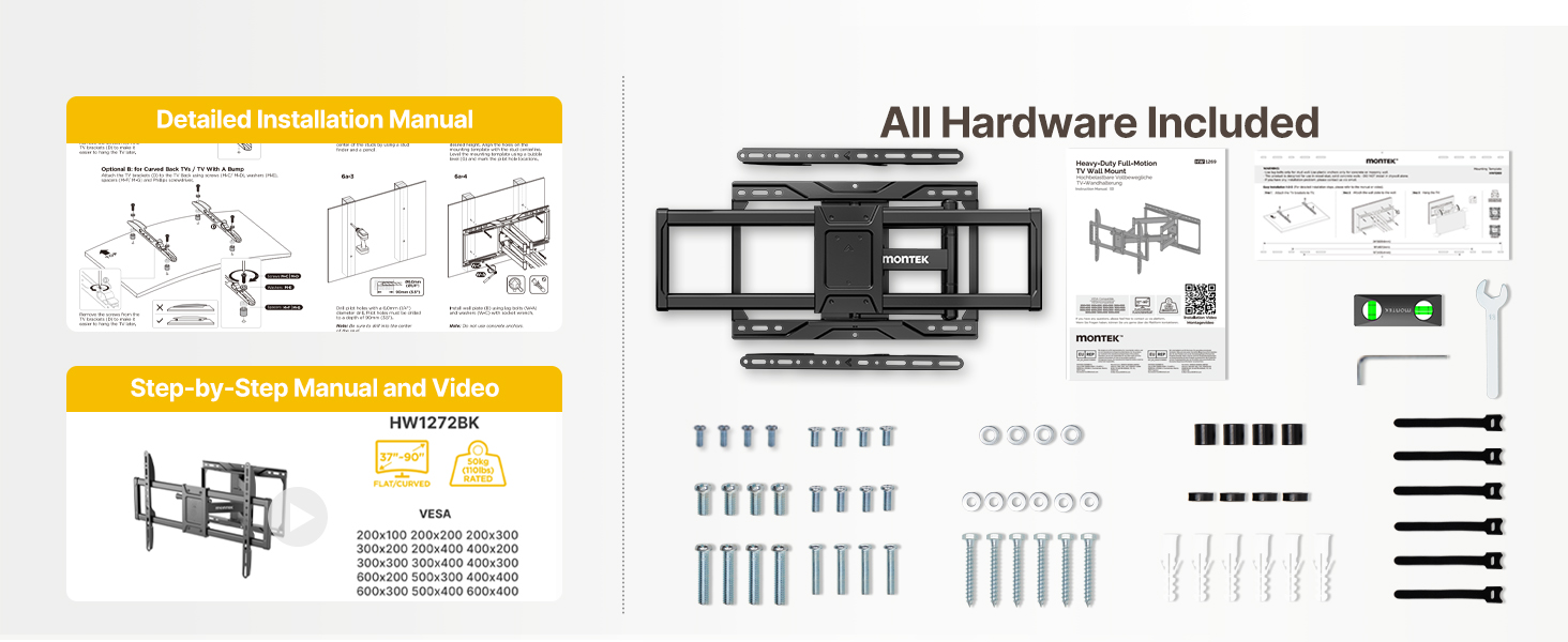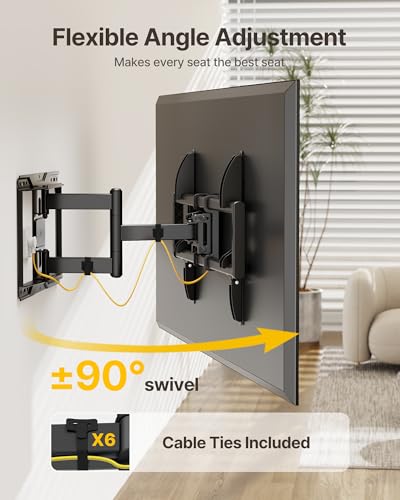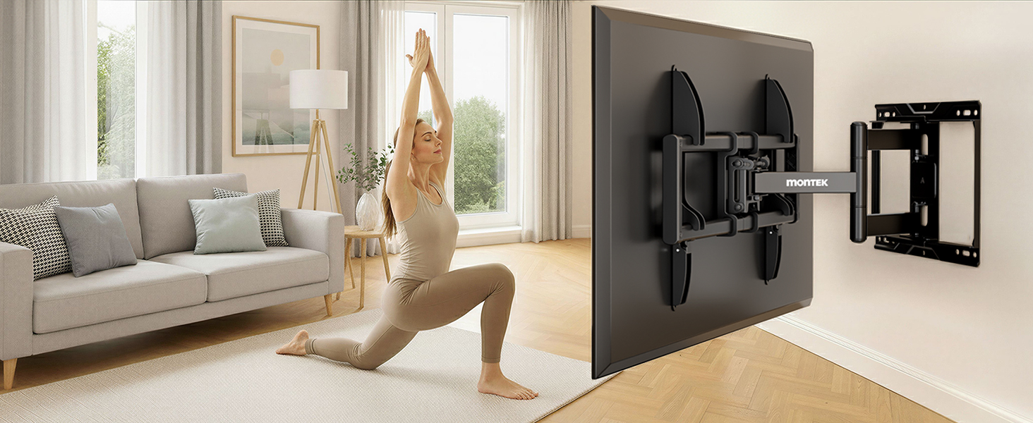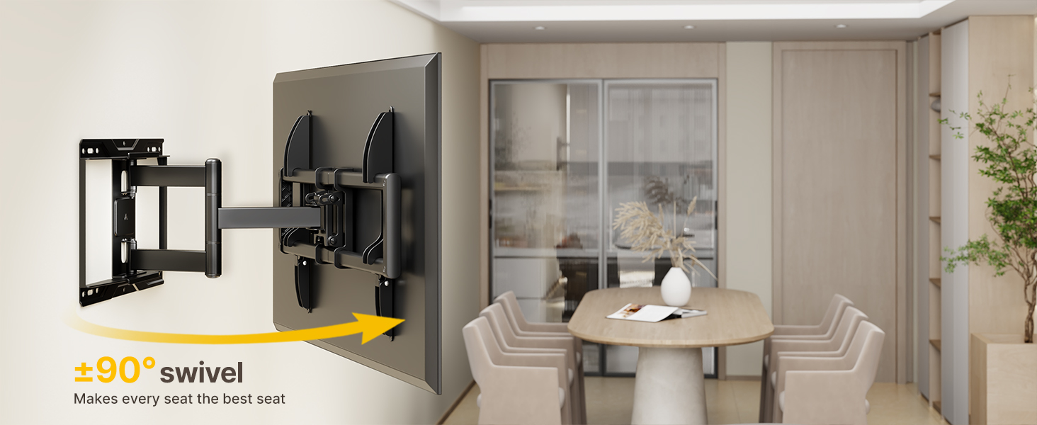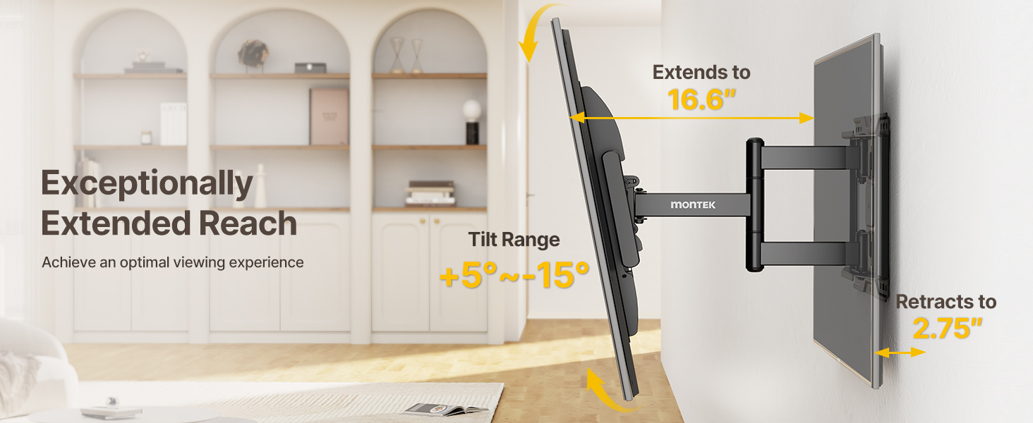 - 【ULTRA FLEXIBLE VIEWING】 Experience full-motion freedom with monTEK vesa wall mount. Enjoy ±90° swivel (vs. standard 6-arm mounts with only ±45°), +5°/-15° tilt to minimize glare, and ±3° level adjustment after installation for a perfectly aligned screen. TV mounting bracket is ideal for corner setups, wide seating areas, and anyone who wants the best view from every angle