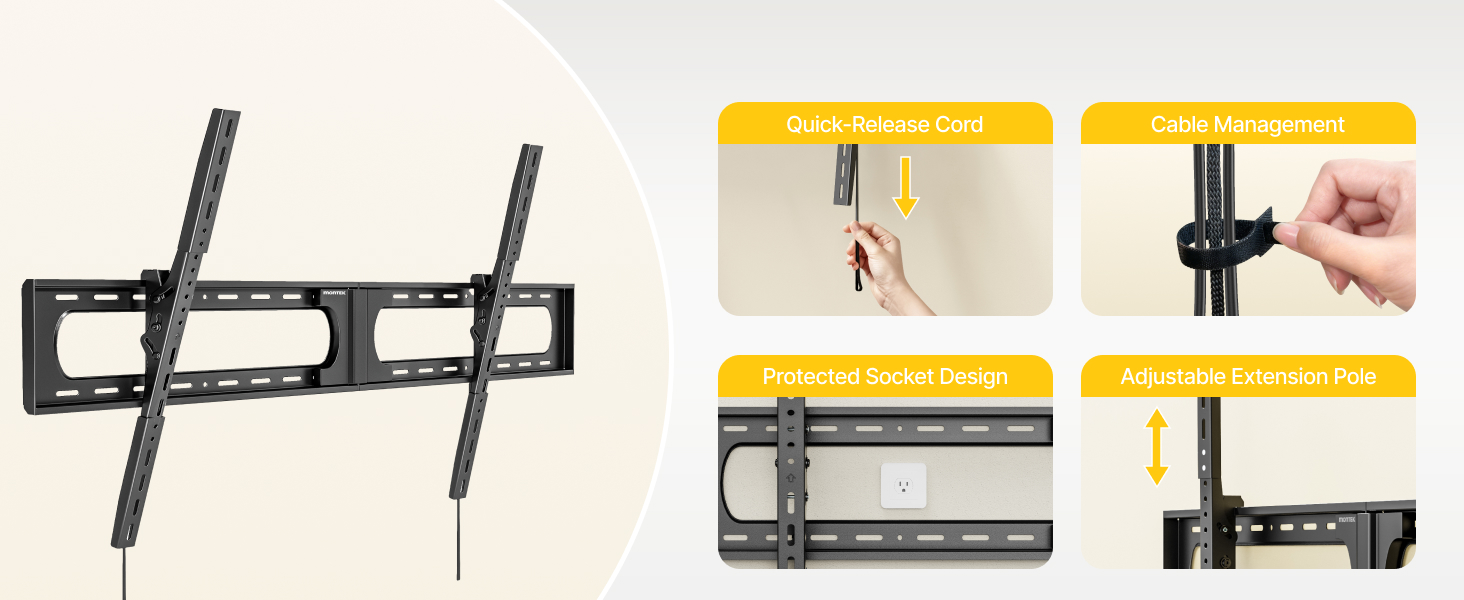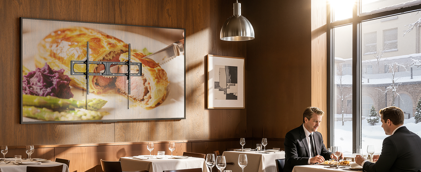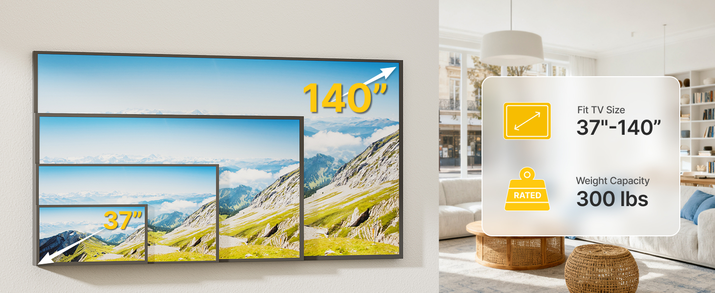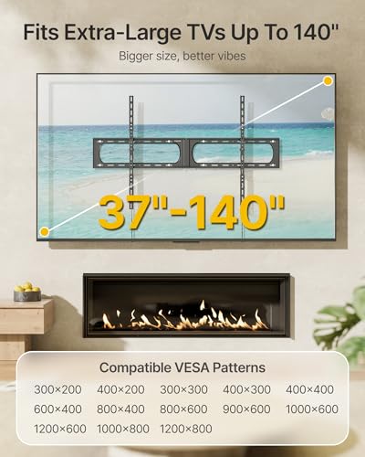 [WIDE COMPATIBILITY] Designed for massive televisions up to 140 inches, this tilting tv mounting bracket unmatched support with a 136kg weight limit and specialized reinforcement for 120+ inch screens. Its universal VESA compatibility (300×200mm to 1200×800mm) ensures a perfect fit, eliminating the guesswork for oversized TVs.
