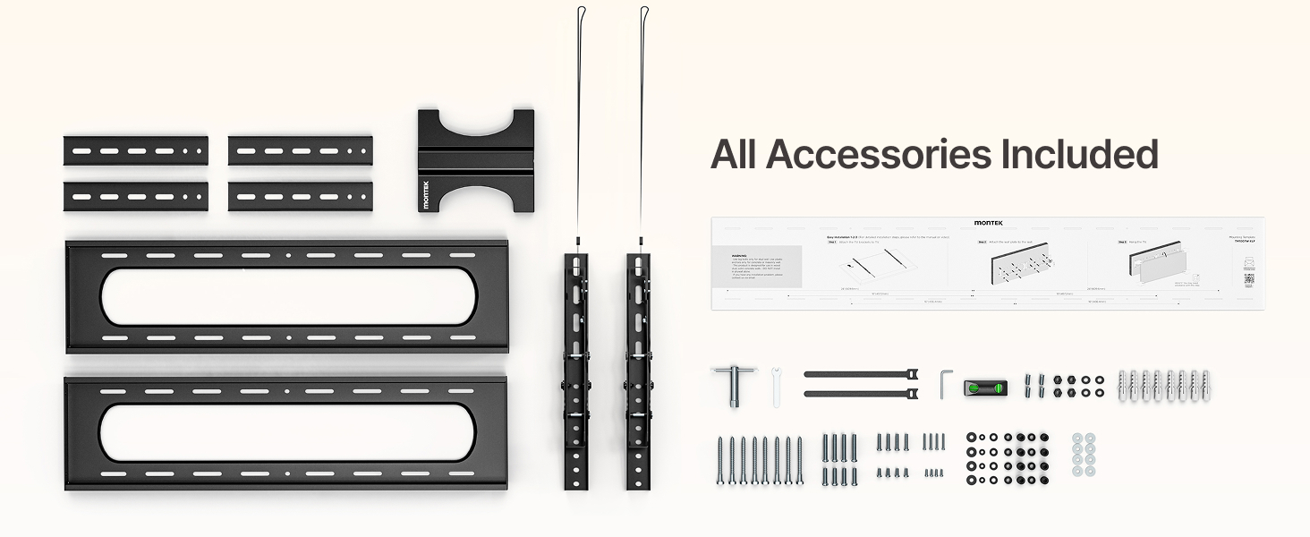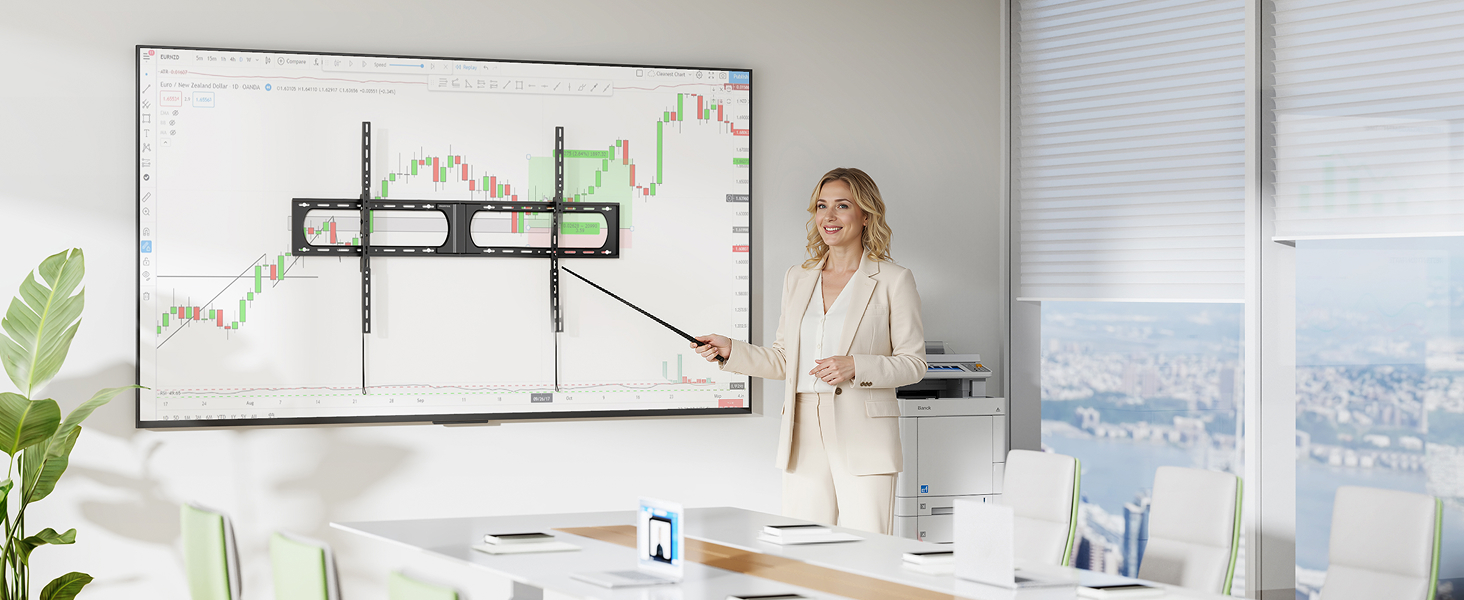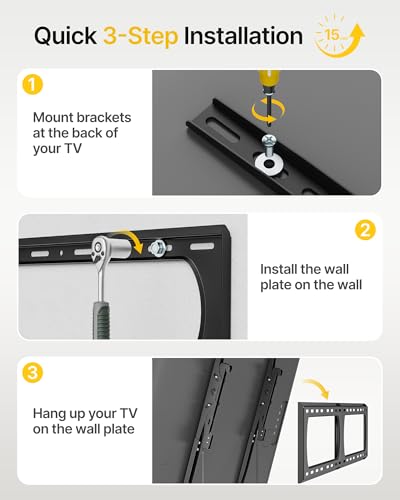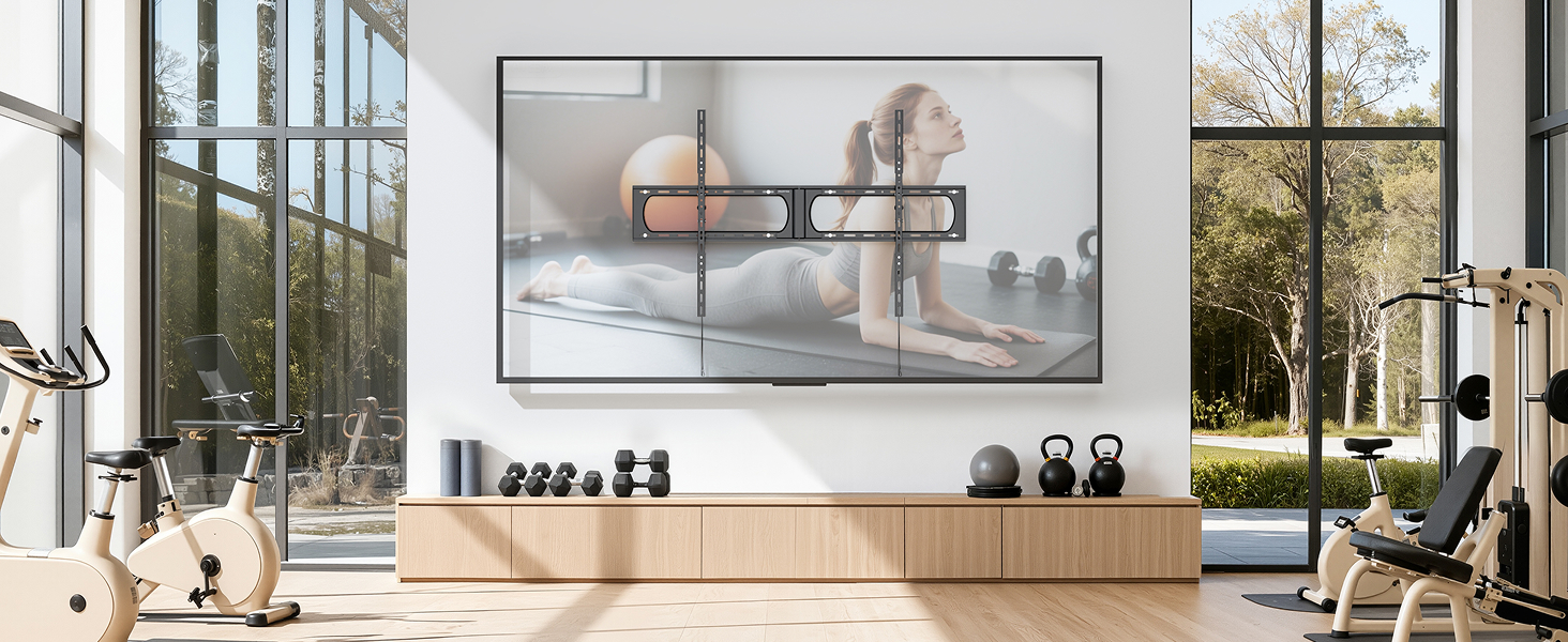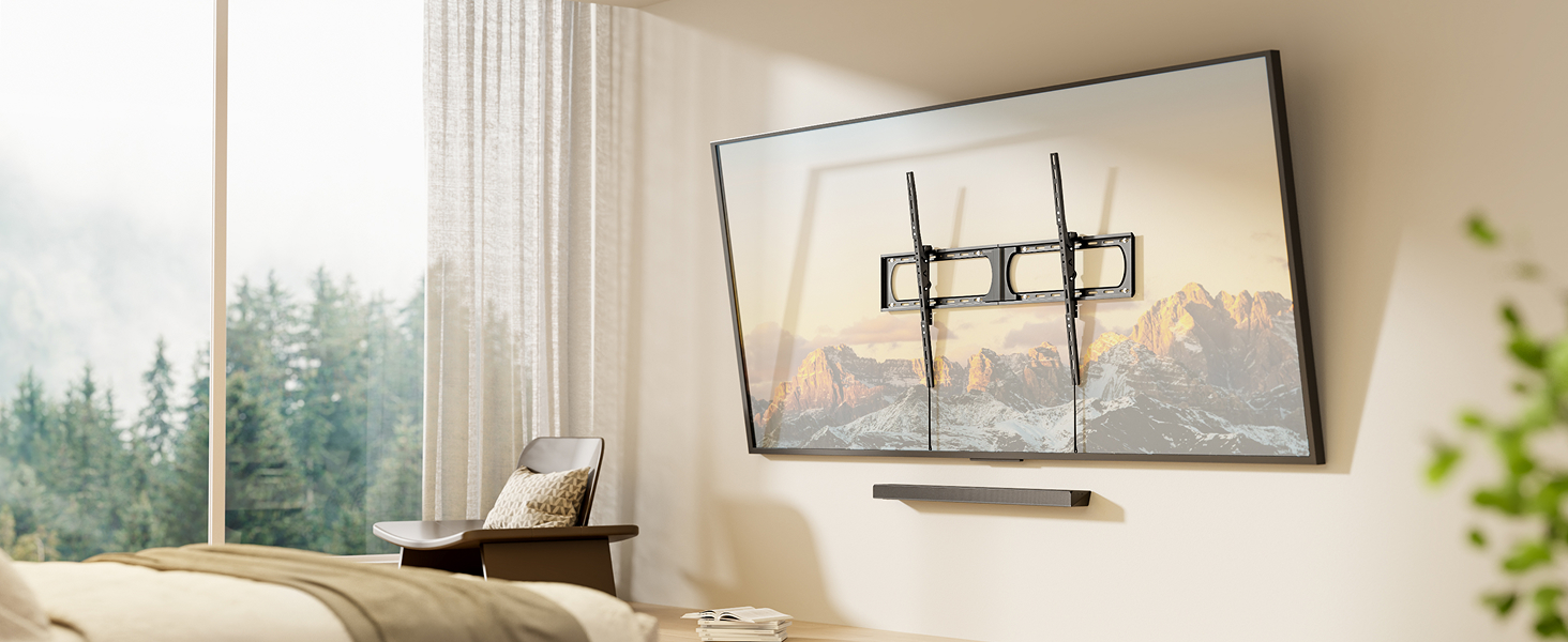 [4X LOAD-TESTED HEAVY-DUTY MOUNT] This heavy duty TV mount supports TVs from 75 to 120+ inches with an exceptional 136kg capacity—load-tested at 4X its limit for absolute safety. Its high-strength steel construction and ultra-slim 2.4” profile ensure your large-screen TV is both securely mounted and beautifully close to the wall, transforming any room into a premium viewing space.