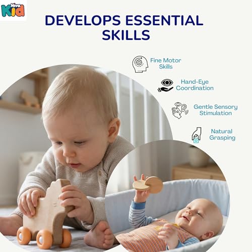 - 【Sensory Development】The thoughtful combination of warm natural wood and soft food-grade silicone provides varied textures, shapes and tactile experiences. Soothing teething rings, easy-grip rattles for tiny hands, stacking toys and wheeled push-along toys. Each wooden baby toy engages the senses and gently develops fine motor skills through natural, hands-on play.