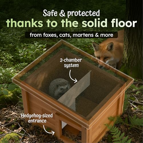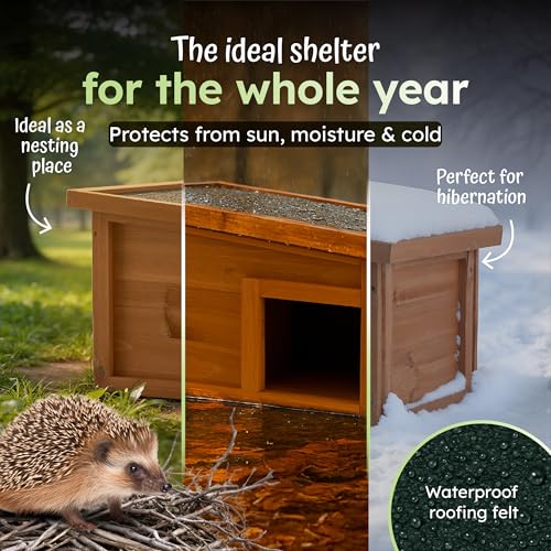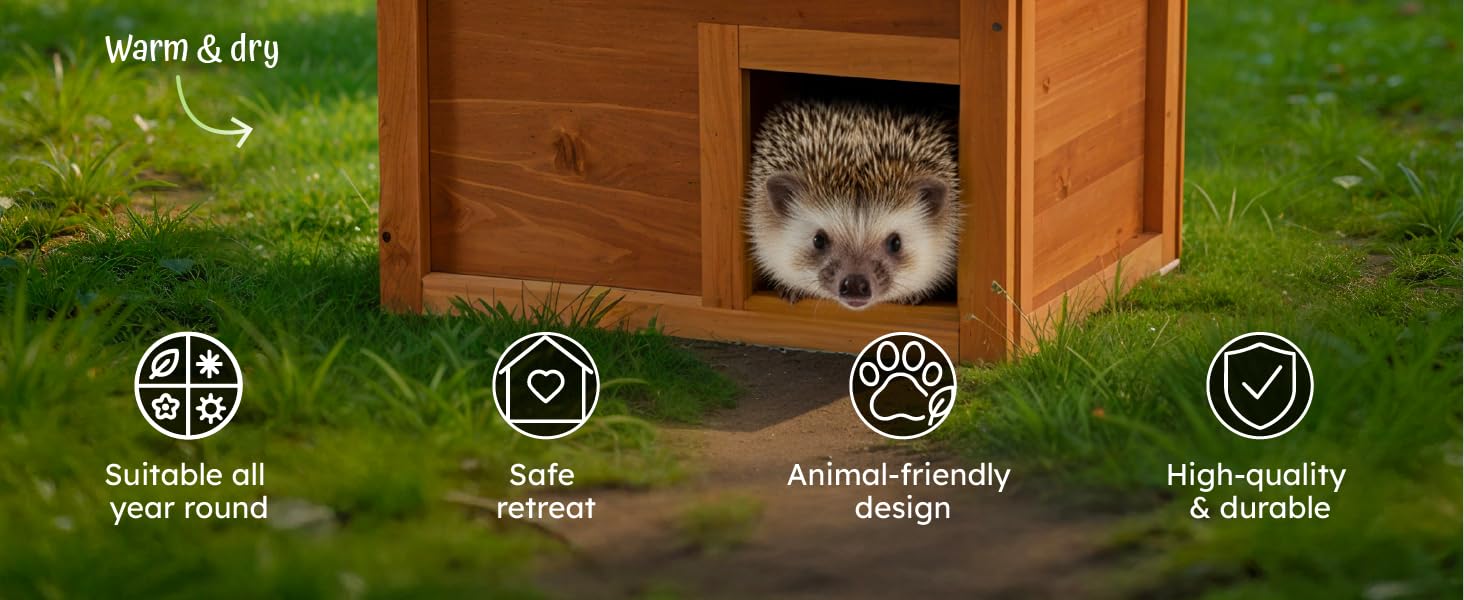 - – , & – Ideal as a hedgehog hibernation house in colder months or a hedgehog feeding station cat proof (when placed in a sheltered location). A beautiful, practical addition to your hedgehog houses for garden collection — helping nature, one guest at a time.