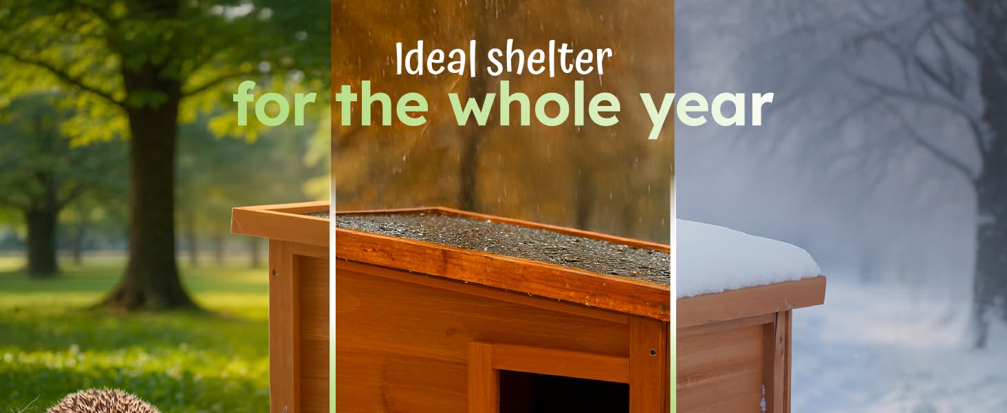 Yes, all our hedgehog houses are built to withstand the elements and are ideal for year-round outdoor use. They provide protection from rain, wind, and cold – perfect for safe hibernation.