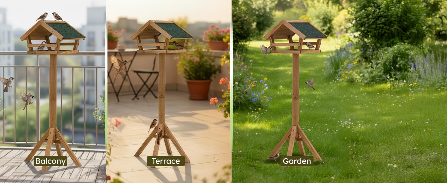 - – – Whether you're looking for bird boxes for gardens UK, a birdhouse kit, or a cat proof bird feeder, this model adapts easily. Use it as a birdbox for garden with the sturdy stand, or hang it to create a compact garden bird feeder space — bird feeders always stylish, always functional.