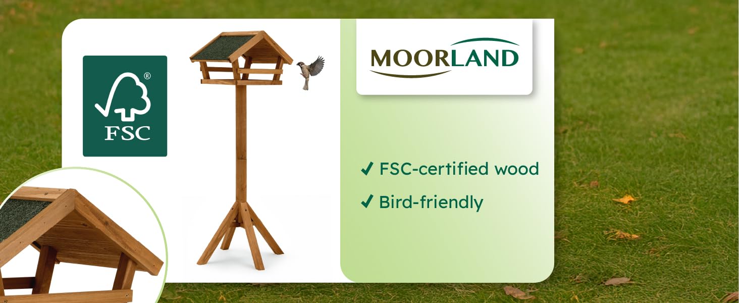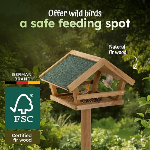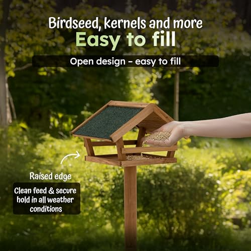 Moorland Wooden Garden Bird Feeders with Stand 101 cm – Open Fronted Bird Box for Robins – FSC Wood Birdhouses for Garden – Weatherproof Bitumen Roof & Freestanding Nesting Box – VH3