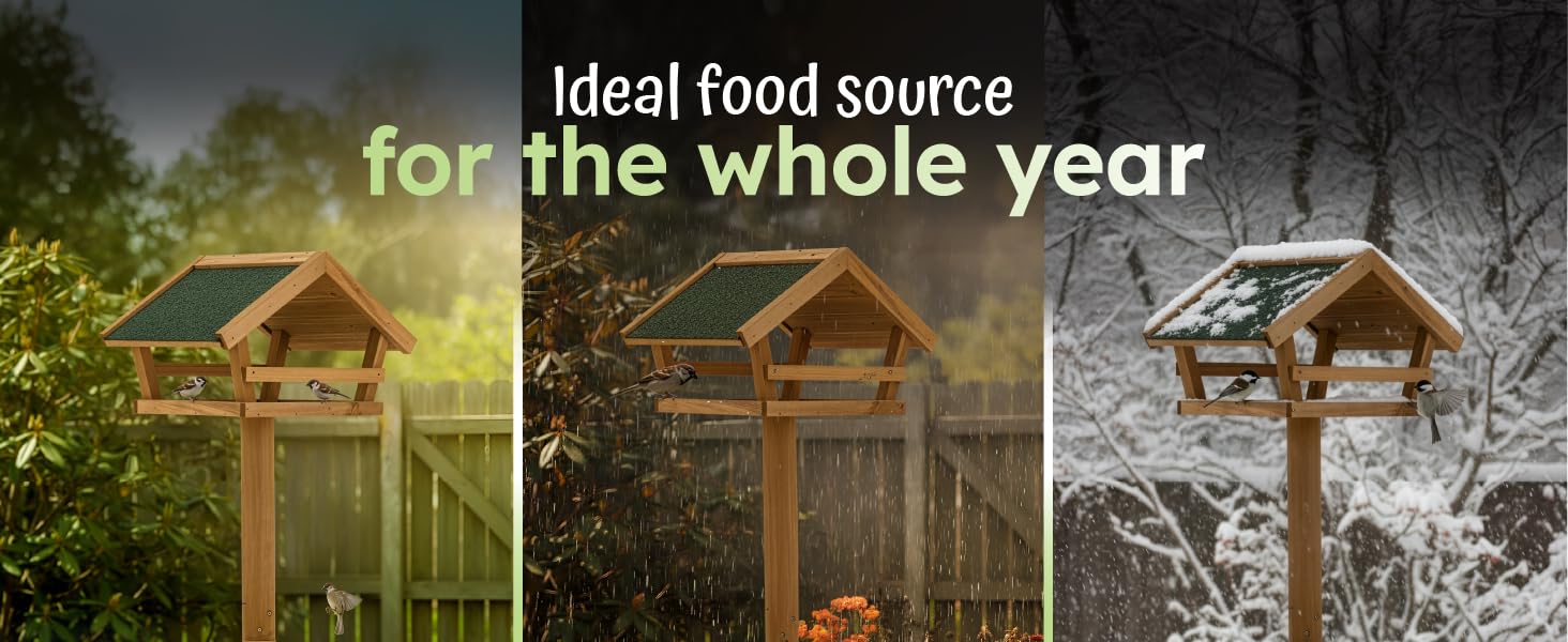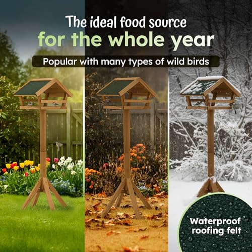 - – Equipped with a weatherproof roof, this wooden bird house keeps feed dry and protected from rain, wind and snow. Built for year-round use, the robin bird boxes for gardens uk are ideal as a wild bird nest box or garden bird feeder to support native species in all seasons.