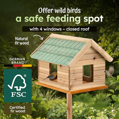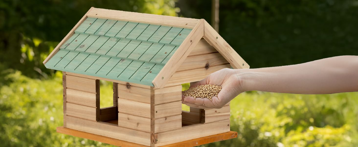 – – Equipped with a wooden shingle roof, this wooden bird house keeps feed dry and protected from rain, wind and snow. Built for year-round use, the robin bird boxes for gardens uk are ideal as a wild bird nest box or garden bird feeder to support native species in all seasons.