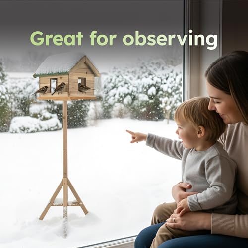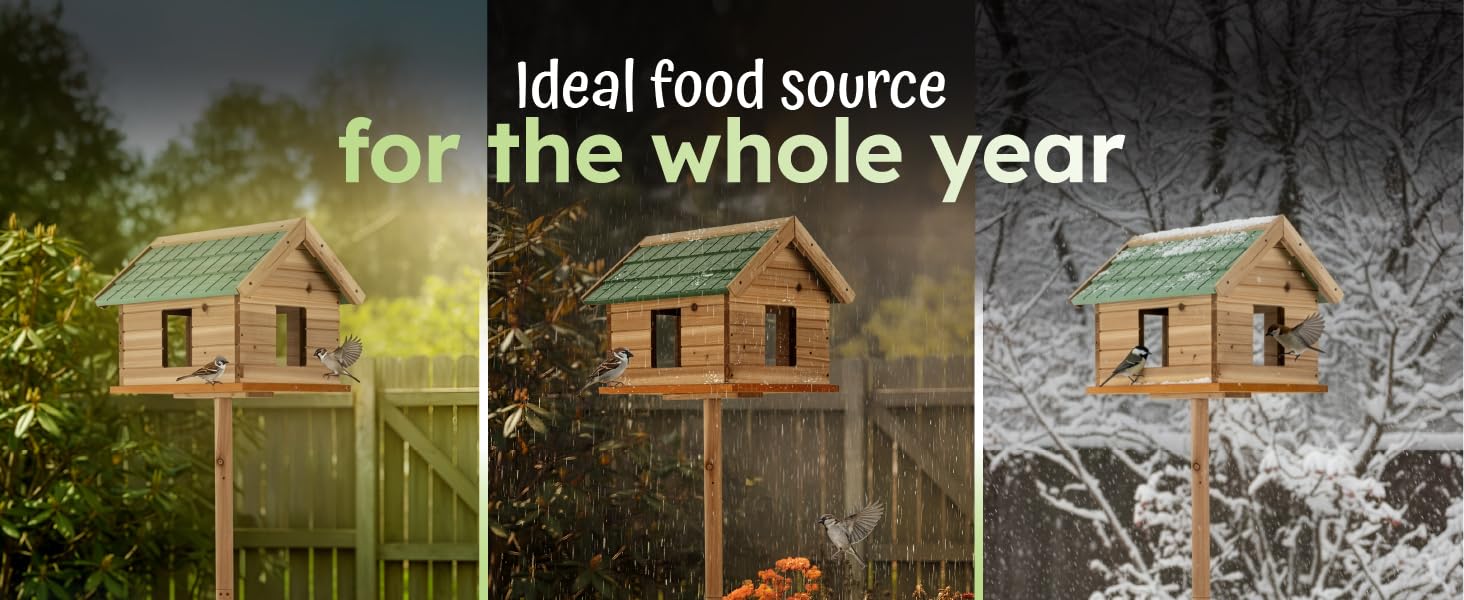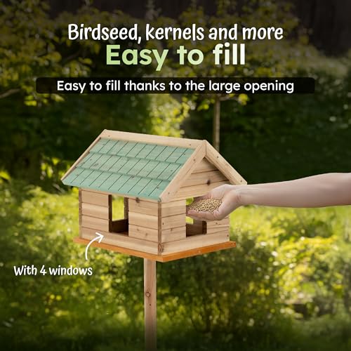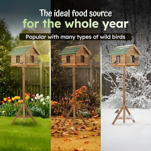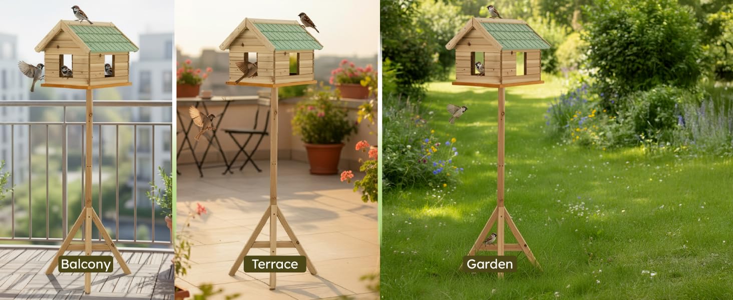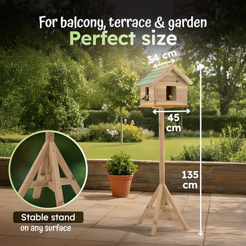 – Designed as a freestanding bird house with a hight of 135 cm, this feeder comfortably accommodates multiple small to medium birds. Perfect as a robin nest box, sparrow nest box, or even a general nesting box for wild birds, encouraging beautiful birdwatching moments.