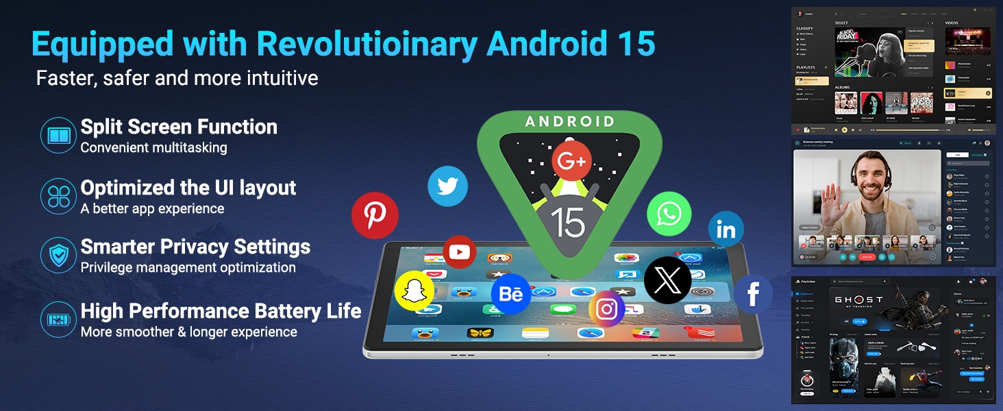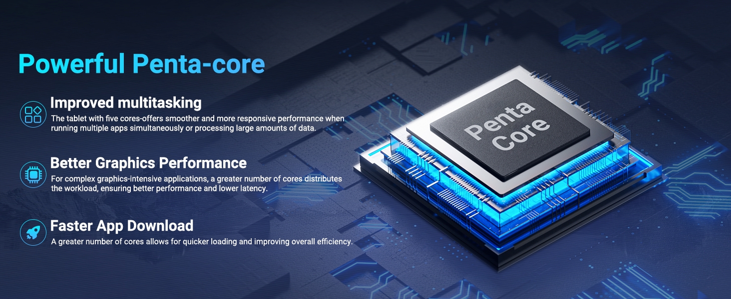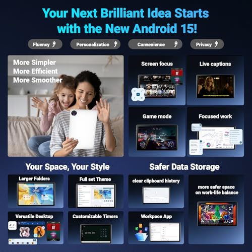 【Tablet Android 15 & High-performance CPU】The tablet is equipped with the Android 15 operating system, which ensures greater security, customizable privacy, and advanced permission management. Driven by a 5-core Cortex-A53 processor and a single-core Cortex-A73 up to 1.8GHz, it offers superior fluidity and stability in multitasking, gaming, and entertainment. Gives you a seamlessly, delivering a fast, professional-grade experience.