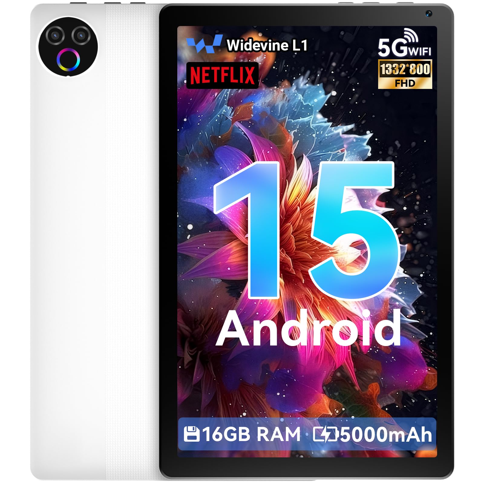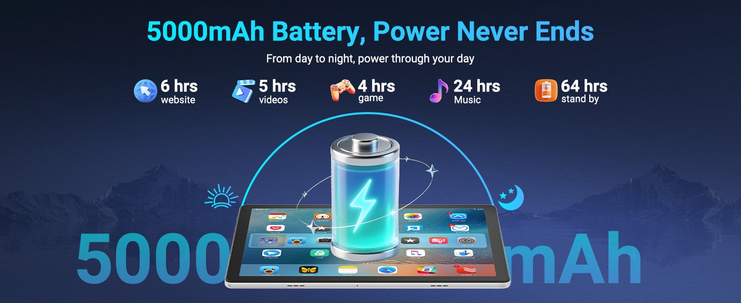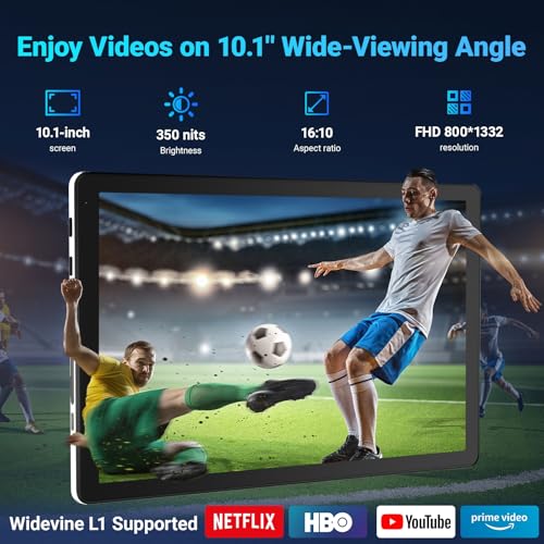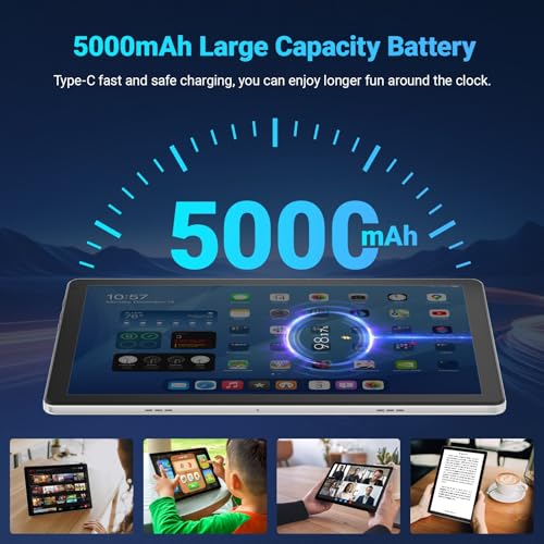 【5000mAh Battery+Widevine L1 Support】The Android tablet has a powerful 5000mAh battery, it offers up to 3 days of standby time and up to 5 hours of mixed usage without worrying about constant recharging. Whether you're on a long commute, traveling, or simply enjoying a day at home, this tablet keeps you connected. Besides, this tablet also supports Widevine L1 – a great choice for people who like to watch movies, TV shows or listen to songs.