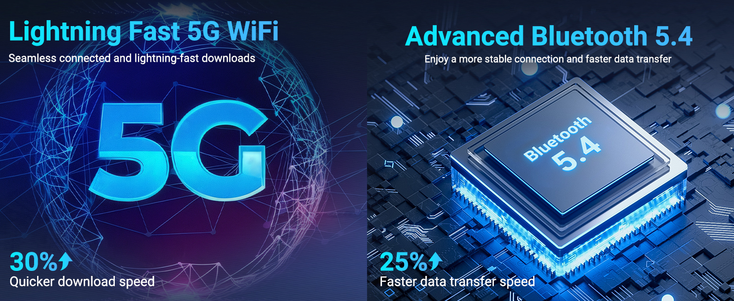 【10 Inch FHD Display & WiFI 6】 This 10 inch tablet features an IPS screen with a high resolution of 800×1332 pixels, delivering smooth visuals and vibrant colors for an breathtaking visual experience! Android tablet adopts the WiFi 6 technology support 5G and 2.4G high-speed WiFi, and Bluetooth 5.4. Whether you're reading, or browsing the web, the sharp and detailed display ensures you can see every detail, making your experience even more engaging.