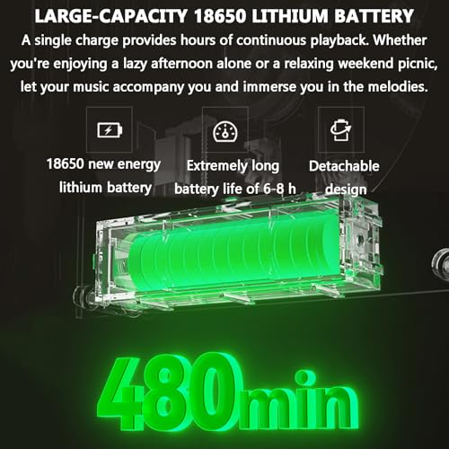 - LARGE-CAPACITY LITHIUM BATTERY: A full charge provides 6-8 hours of continuous playback. Whether it's a lazy afternoon alone or a relaxing weekend picnic, let music accompany you and immerse you in beautiful melodies.