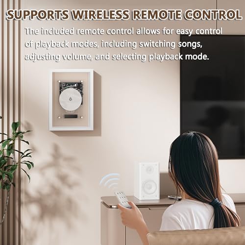 Music Frame Cd Player, Wall Mountable Cd Player Frame Decorative, Dual Play Mode, LED Digital Display, W/Remote Control, for Home/corridor/Office/Wall Decor (white)
