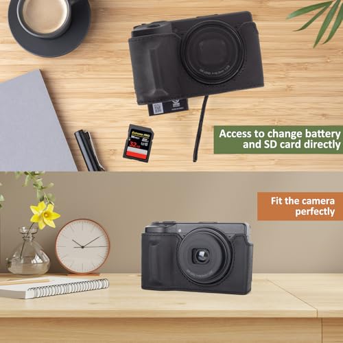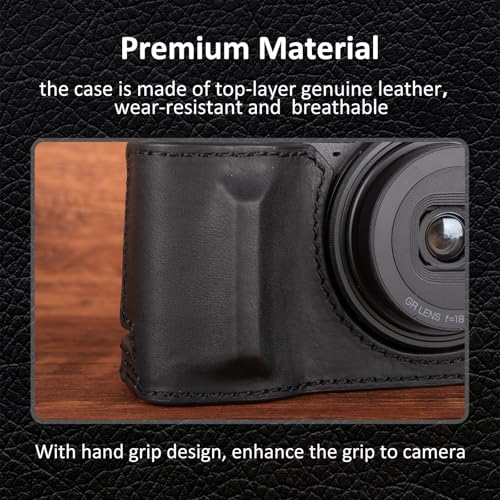 MUZIRI KINOKOO Half Case for Ricoh GR IV GR III Camera, Premium Genuine Leather Protective Case Compatible for GR IV/GR III Digital Camera, with Opening Bottom and Hand Grip Design – Black
