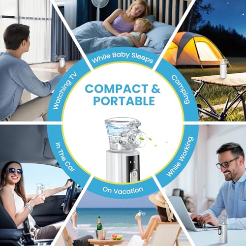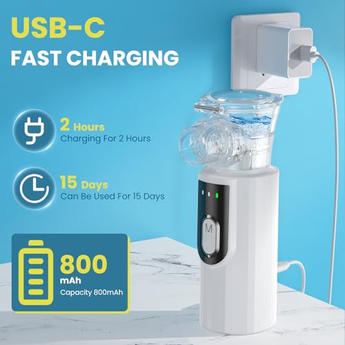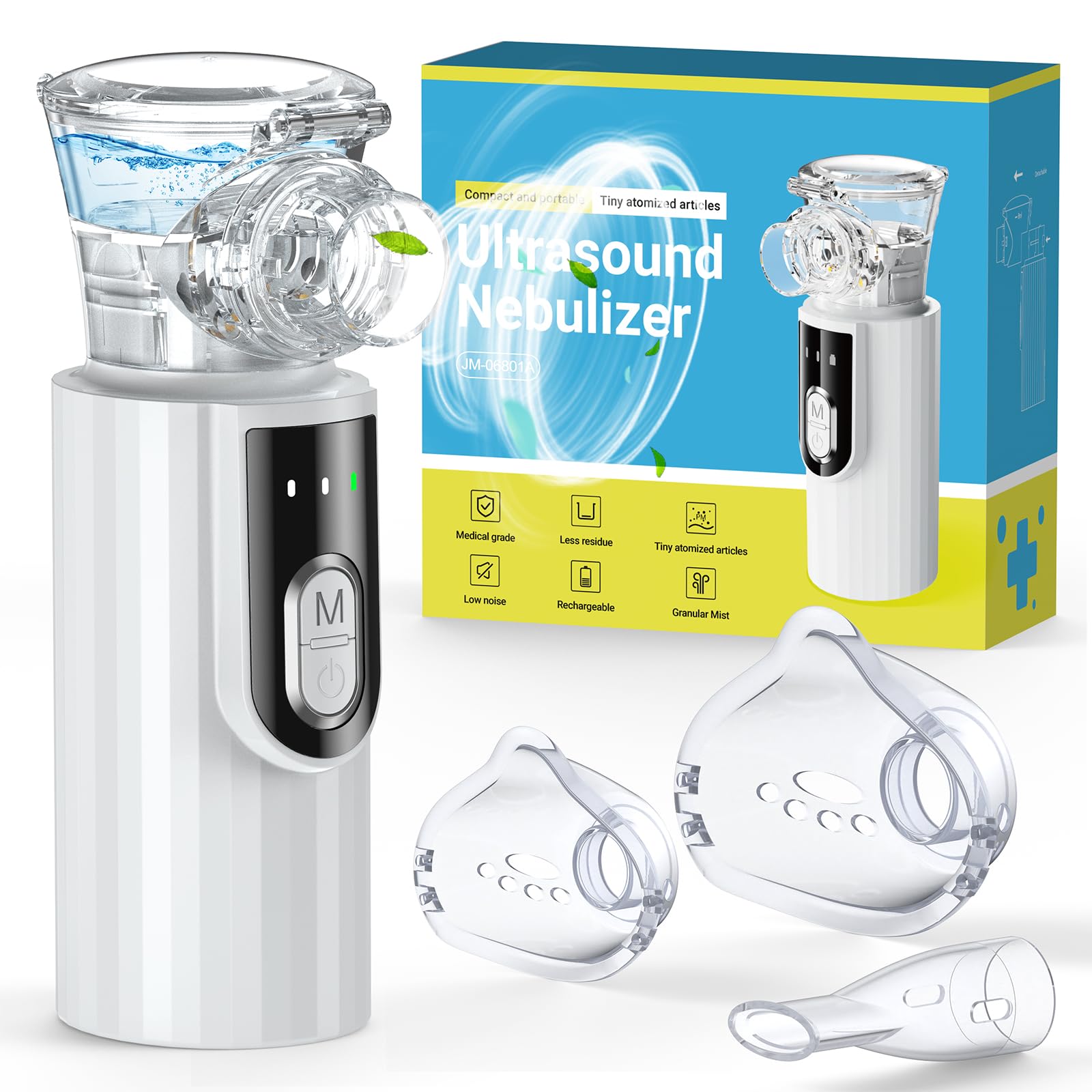 Nebuliser – Machine for Adults & Kids, Quiet Portable Handheld Nebulizer with 2 Masks & Mouthpiece, Two Modes Mesh Nebulizer, USB-C Rechargeable Self-Cleaning, for Travel and Home, White