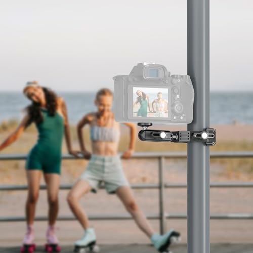 - 【Heavy Duty and Scratch Resistant】 The aluminum alloy and stainless steel hybrid material, combined with precise CNC machining, makes this phone and camera photography gear robust. Nonslip rubber pads on the clamp mount and the device mounting plate can increase stability and protect your equipment against scratches. Compatible with small rig magic arms compatible with Manfrotto magic arms via the 1/4" threaded holes