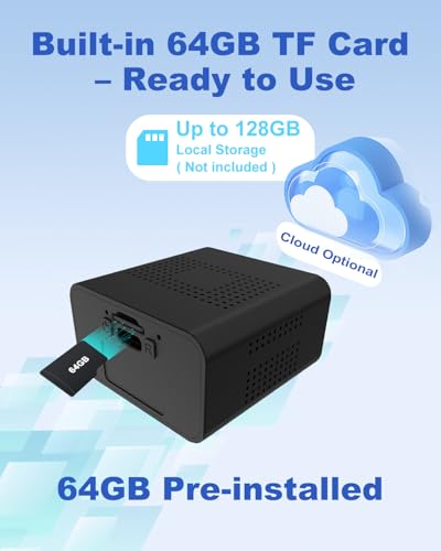 【Built-in 64GB TF Card 】This mini wireless security camera comes pre-installed with 64GB of storage, so you can save footage right out of the box with no extra purchase required. Supports up to 128GB TF card and optional cloud storage.