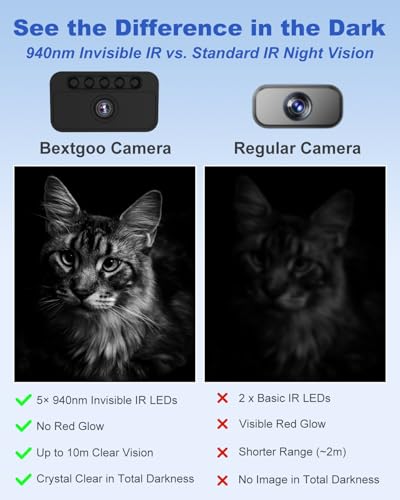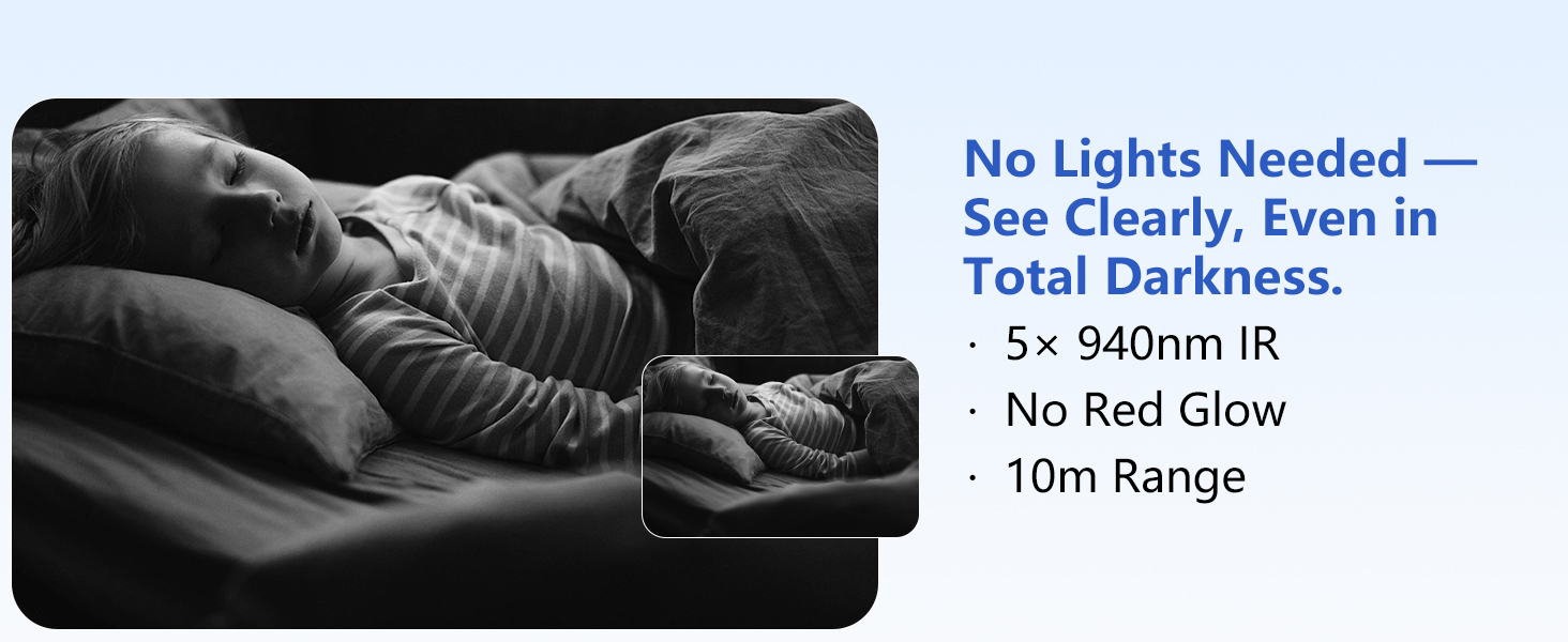 【Superior Night Vision】 Equipped with 5× 940nm infrared lights, this no wifi security camera delivers up to 10m night vision in complete darkness.