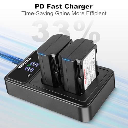 - PD Fast Charging And Dual Slot Charger Design: The SOVOTIKO NP-FZ100 battery charger has a USB-C port that supports the PD protocol. When your adapter power is greater than 20w, you can unlock faster charging speeds. In addition, the dual-slot design allows you to charge two batteries at the same time.