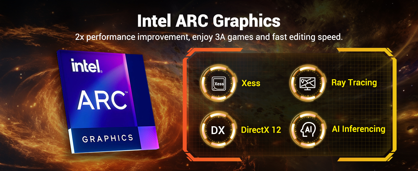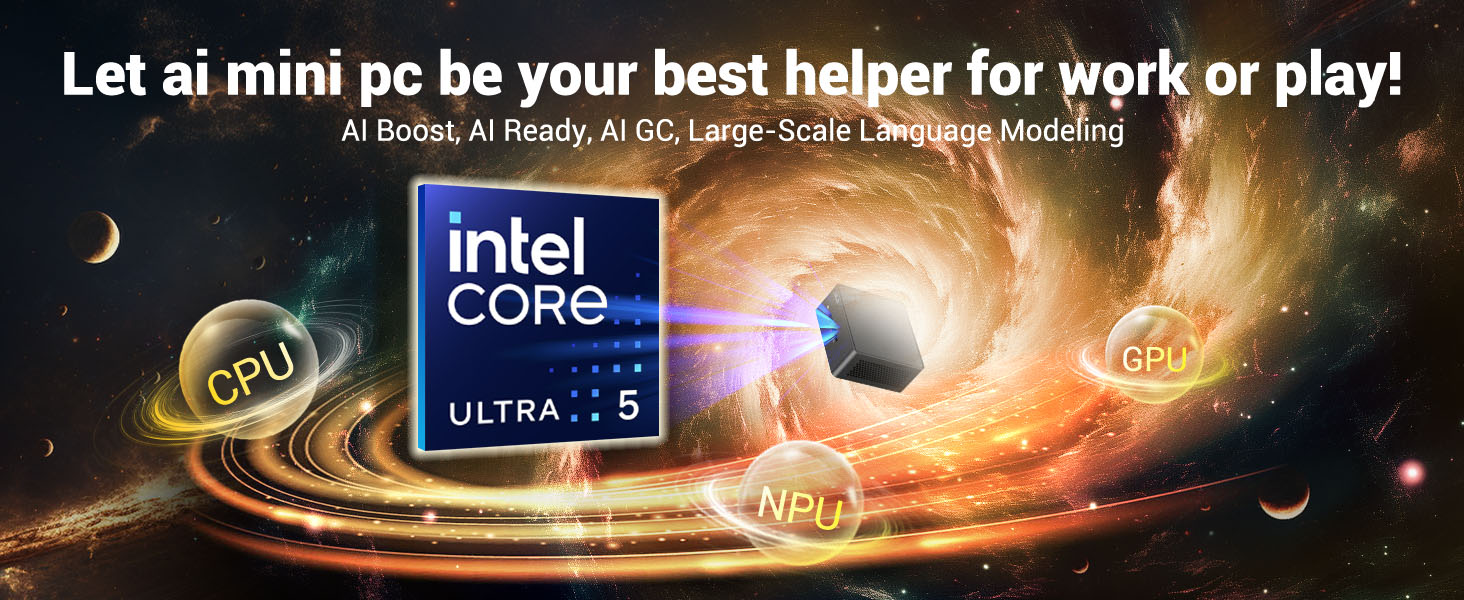 [THE AI FUTURE IS HERE] NUC 14 Pro Desktop Computer brings you AI GC, AI Boost, AI Ready and other AI-related applications, which can achieve low-power AI acceleration and CPU/GPU offloading, improve work efficiency while ensuring privacy and flexibility, the combination of CPU+GPU+NPC unleashes local superpowers, AI-exclusive chip NPU, supports low-power operation of AI applications such as video conferencing background blur and graphics enhancement, and video conferencing power consumption can be reduced by up to 40%.