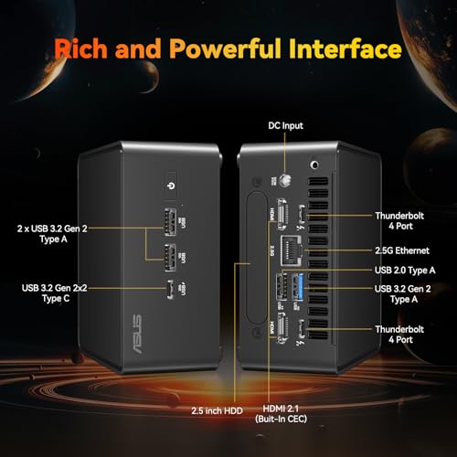 [RICH INTERFACES] Including 3 X USB 3.2 Gen2 Type A, 1 X USB 2.0 Gen2 Type A, 1 X USB 3.2 Gen2X2 Type C, 2 X HDMI2.1, 2 X Thunderbolt4 ports, DC input port, 2500MB Gigabit Ethernet —all packed into a range of flexible, customizable form factors, Combined with two HDMI and a full Type-C or Thunderbolt4, the nuc 14 mini desktop lets you take your productivity to the next level on an 8K display or on up to four 4K displays.