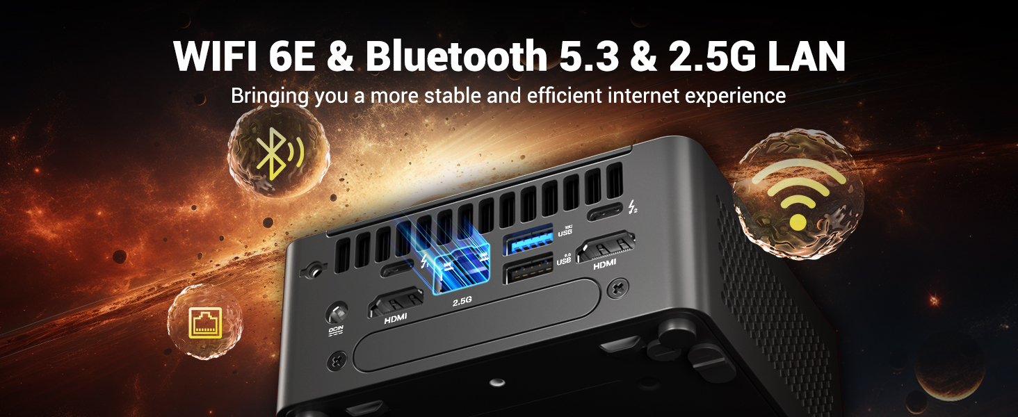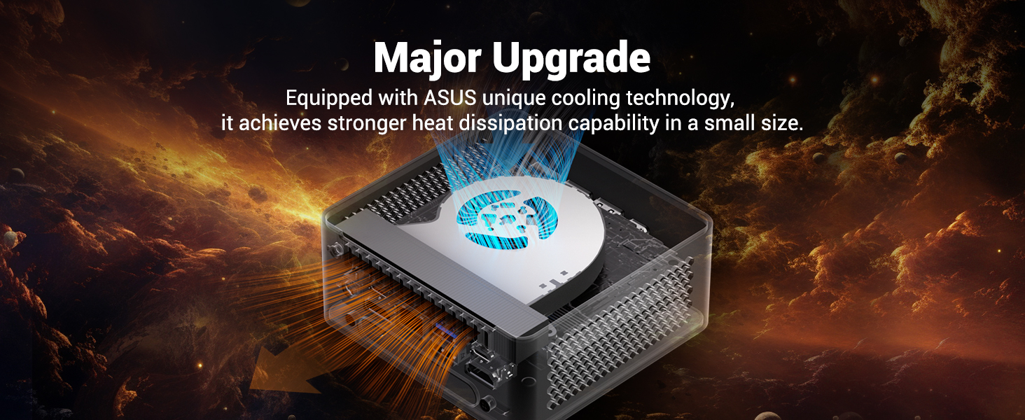 [IMPROVED COOLING] Nuc 14 Pro mini gaming pc adopts nique thermal modules and heat technology, upgrades the cooling fan area, and upgrades to an aluminum fin heat dissipation architecture + dual copper tube direct contact technology. Large-area air inlet mesh holes on both sides increase the air intake volume of the air duct. The rear side is the air outlet, and with the large-size turbo fan, it effectively removes heat.