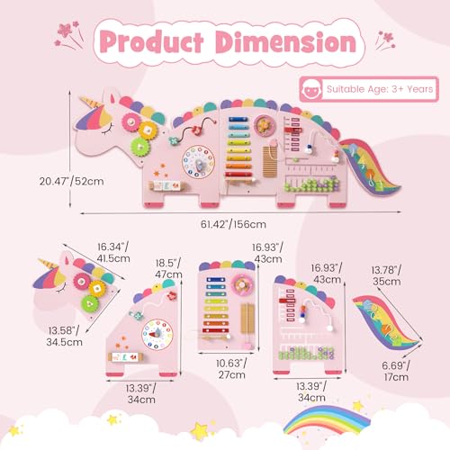 - Ideal Gift for Children: The unicorn design is cute and dreamy. This sensory board for wall eliminates boring knowledge indoctrination and inspires curiosity. Whether it's Children's Day, birthday or Christmas, it is an excellent gift for children aged 3+