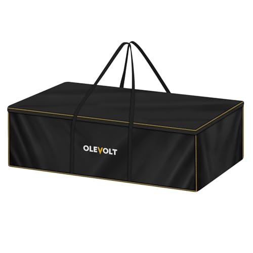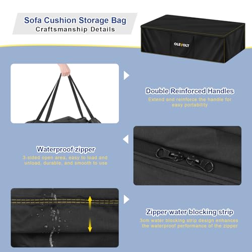 - Durable Storage Bag: OLEVOLT garden furniture cushion storage bag is made of robust 600D oxford fabric, offering enhanced thickness and durability. Featuring double-stitched seams, it significantly improves tear resistance, effectively shielding against wind, sand, rain, sun, dust, dampness, and other adverse weather conditions. This protective cover provides superior safeguarding for your garden cushions and furniture, suitable for both indoor and outdoor use