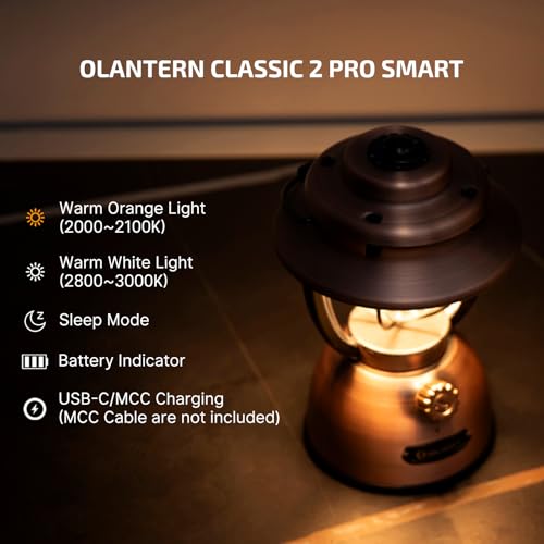 OLIGHT Olantern Classic 2 Pro Smart Camping Lantern, 300 Lumens LED Rechargeable Torch with Dual Light Sources for Hurricane, Emergency, Hiking, Power Outages, Home Decor (Vintage Copper) [Energy Class A]