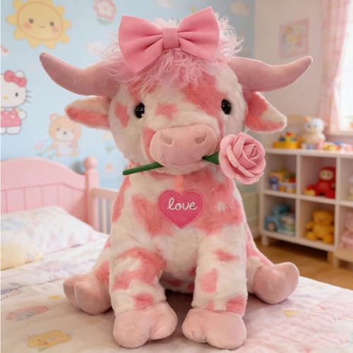 Adorable Highland Cow Stuffed Animal: Our Highland cow stuffed animal is designed with soft and fluffy fabric, providing a cozy and comforting feel. This cute plushie measures 13.78 inches in length, making it the perfect cuddle buddy for all ages.